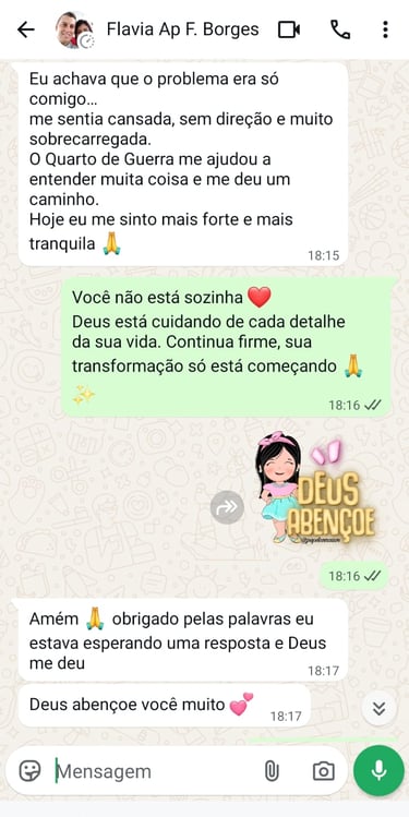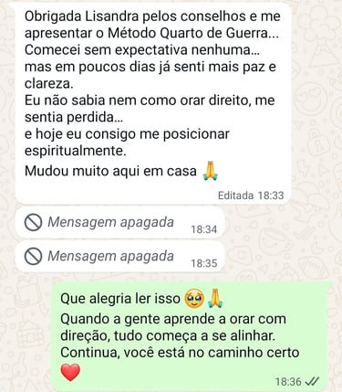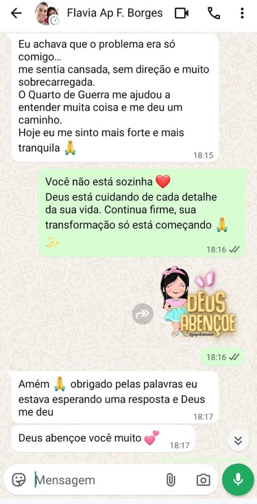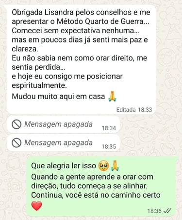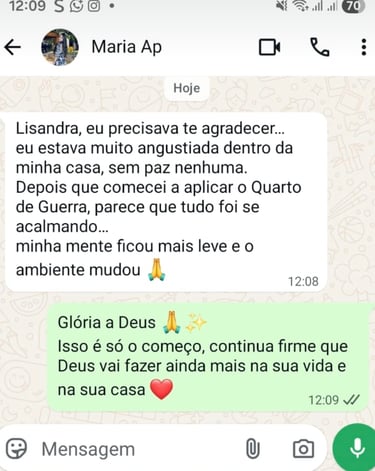 Foi a partir dessas experiências que nasceu o Quarto de Guerra, um método simples e prático que já tem ajudado mulheres a encontrarem paz dentro de casa, clareza emocional e direção espiritual.