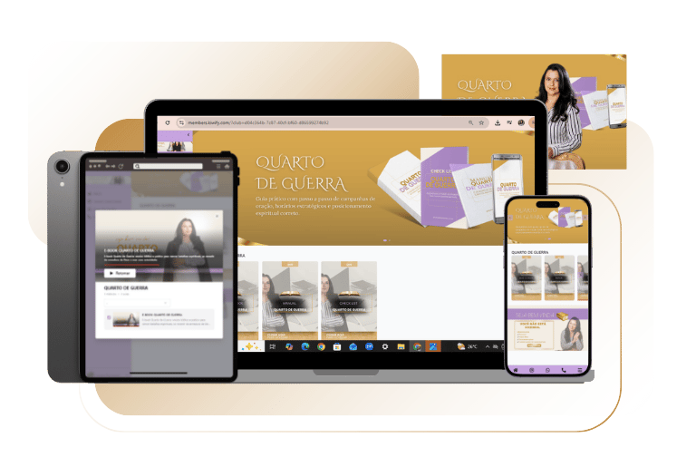 Mas o QUARTO DE GUERRA foi criado exatamente para mulheres que já tentaram de tudo e ainda não viram resultado e precisa de algo prático. Esse material te mostra de forma simples e prática, como organizar sua vida espiritual, orar com direção e começar a ver mudanças reais na sua vida e dentro da sua casa.